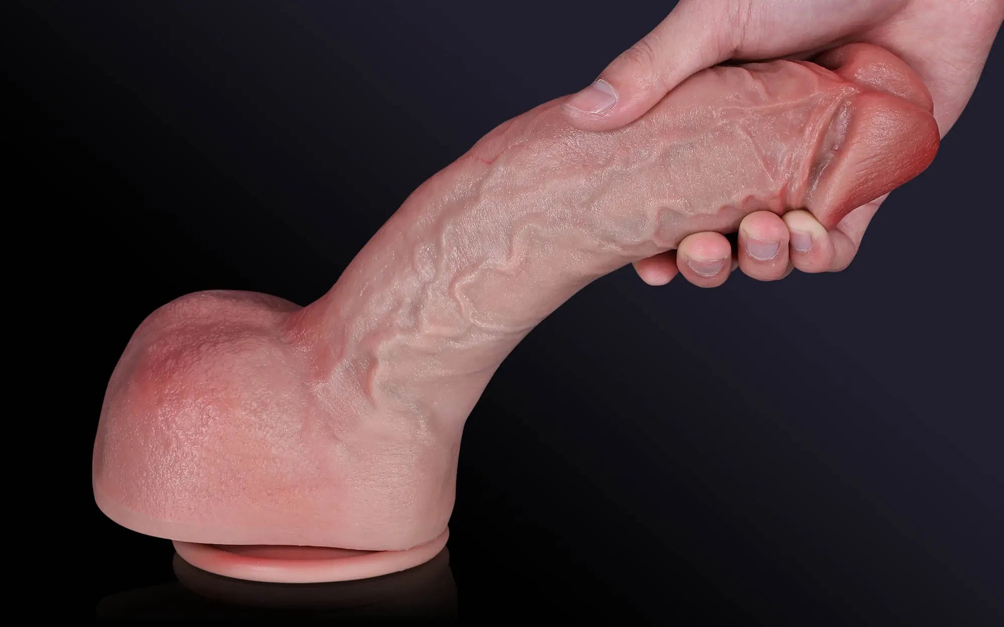A sculpted, naturally swollen glans with a soft, blush-toned finish for true anatomical realism.