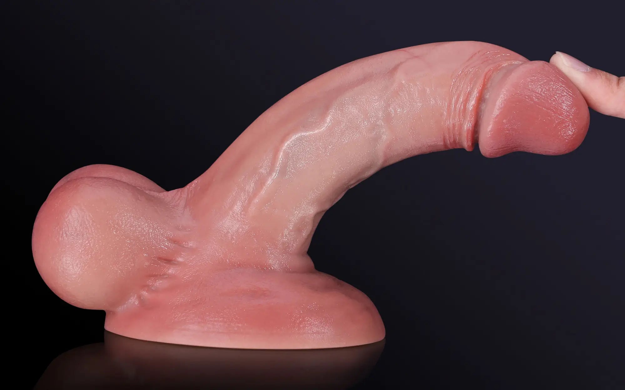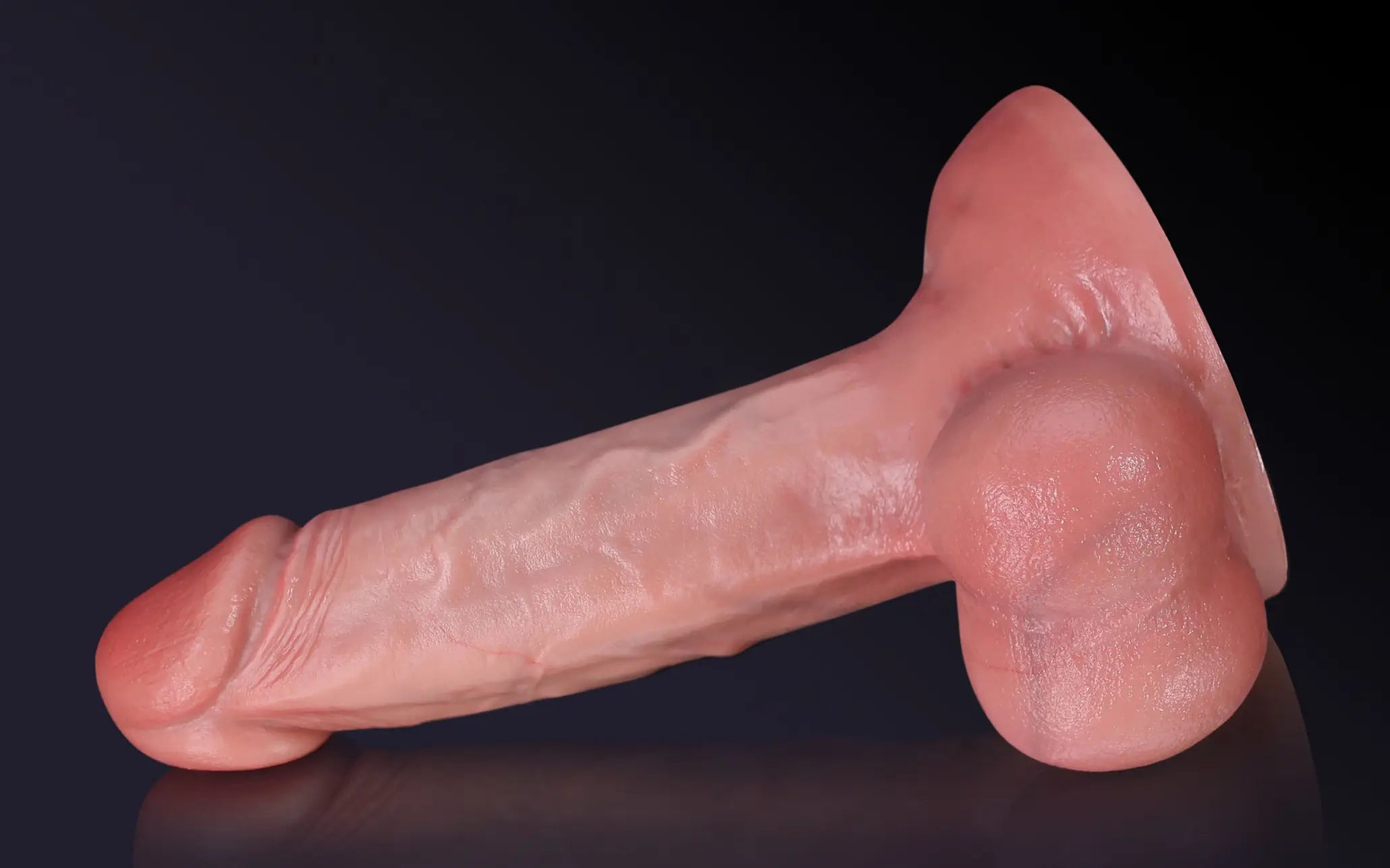 A sculpted, naturally swollen glans with a soft, blush-toned finish for true anatomical realism.