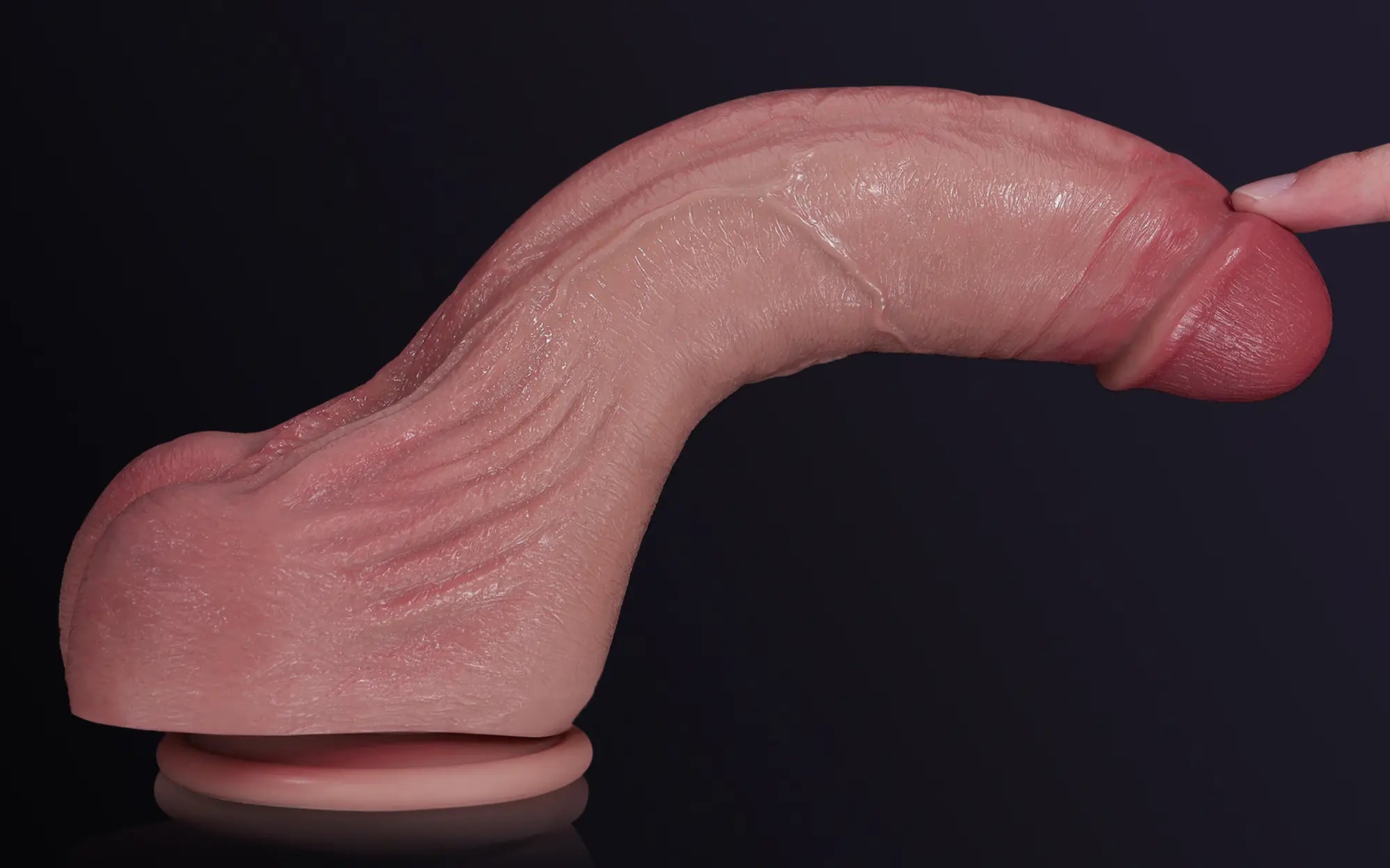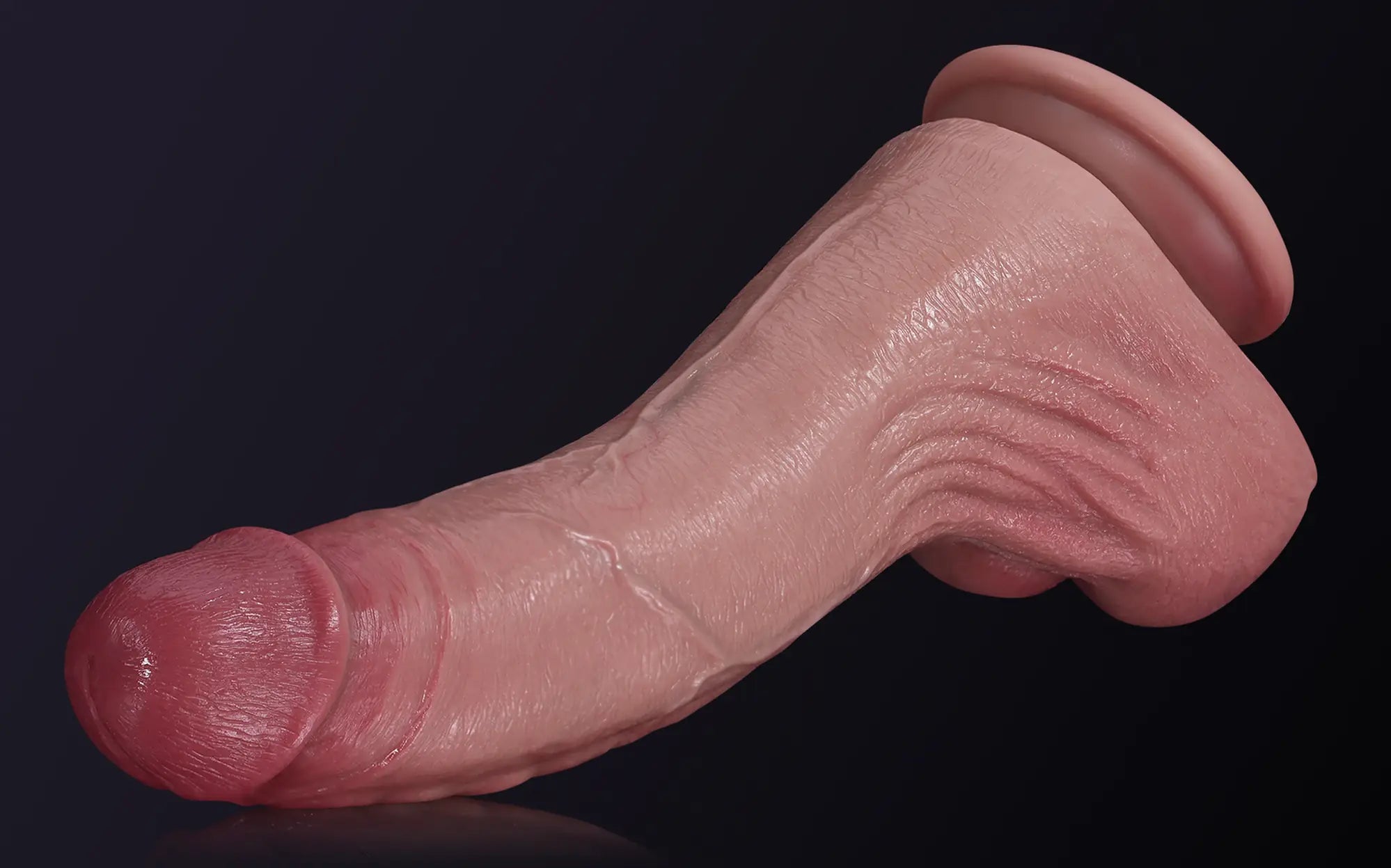 Cameron combines a curved shaft, pronounced veins, and a raised urethral ridge for intense stimulation. A tapered glans supports smooth penetration as the curve targets sensitive areas. Wrinkled, squeezable balls provide realistic feedback. Built from dual-density silicone with a secure suction base, Cameron supports confident, flexible American use.