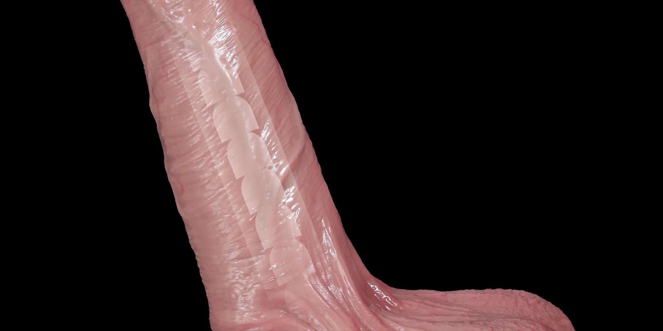 A sculpted, naturally swollen glans with a soft, blush-toned finish for true anatomical realism.